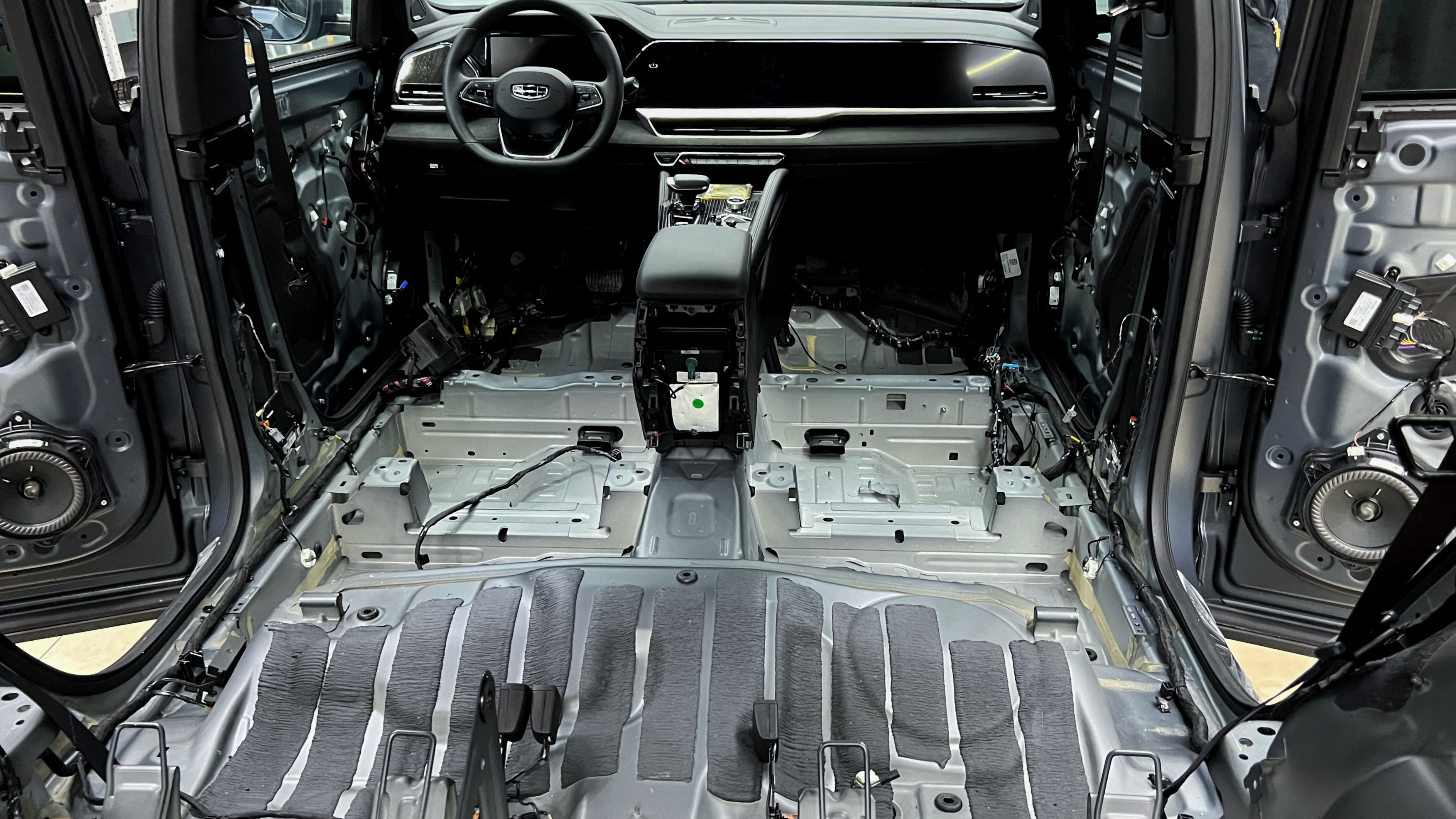 Последним этапом оклеиваем все провода антискрипным материалом и завершаем шумоизоляцию панели её обратной сборкой