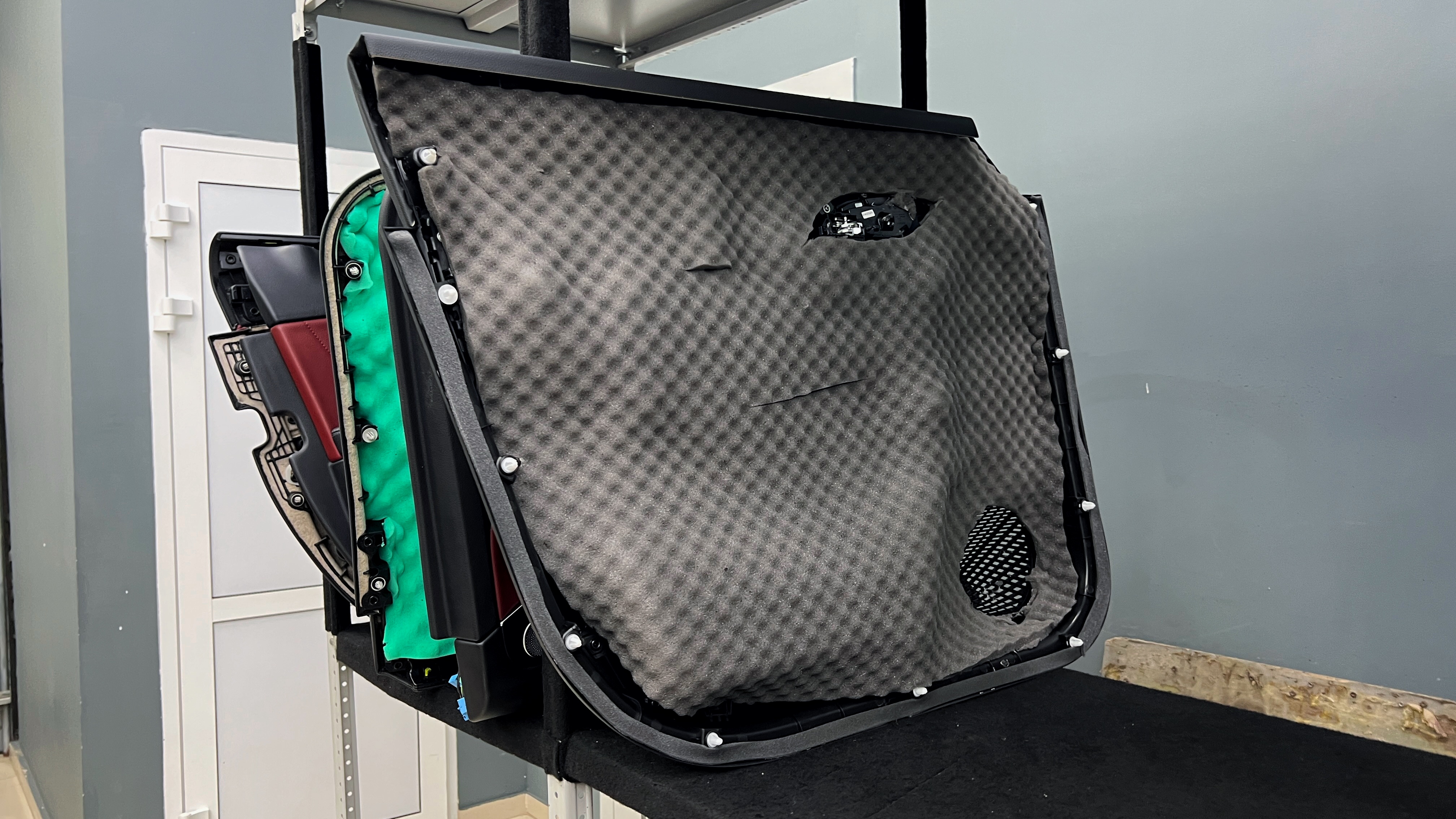 Вторым слоем на корпус панели как правило монтируется шумопоглотитель Absorber A15, однако в зависимости от конструктивных особенностей автомобиля, как и в данном случае, сделать это не всегда возможно, от чего наносится шумопоглотитель Герметон 7.