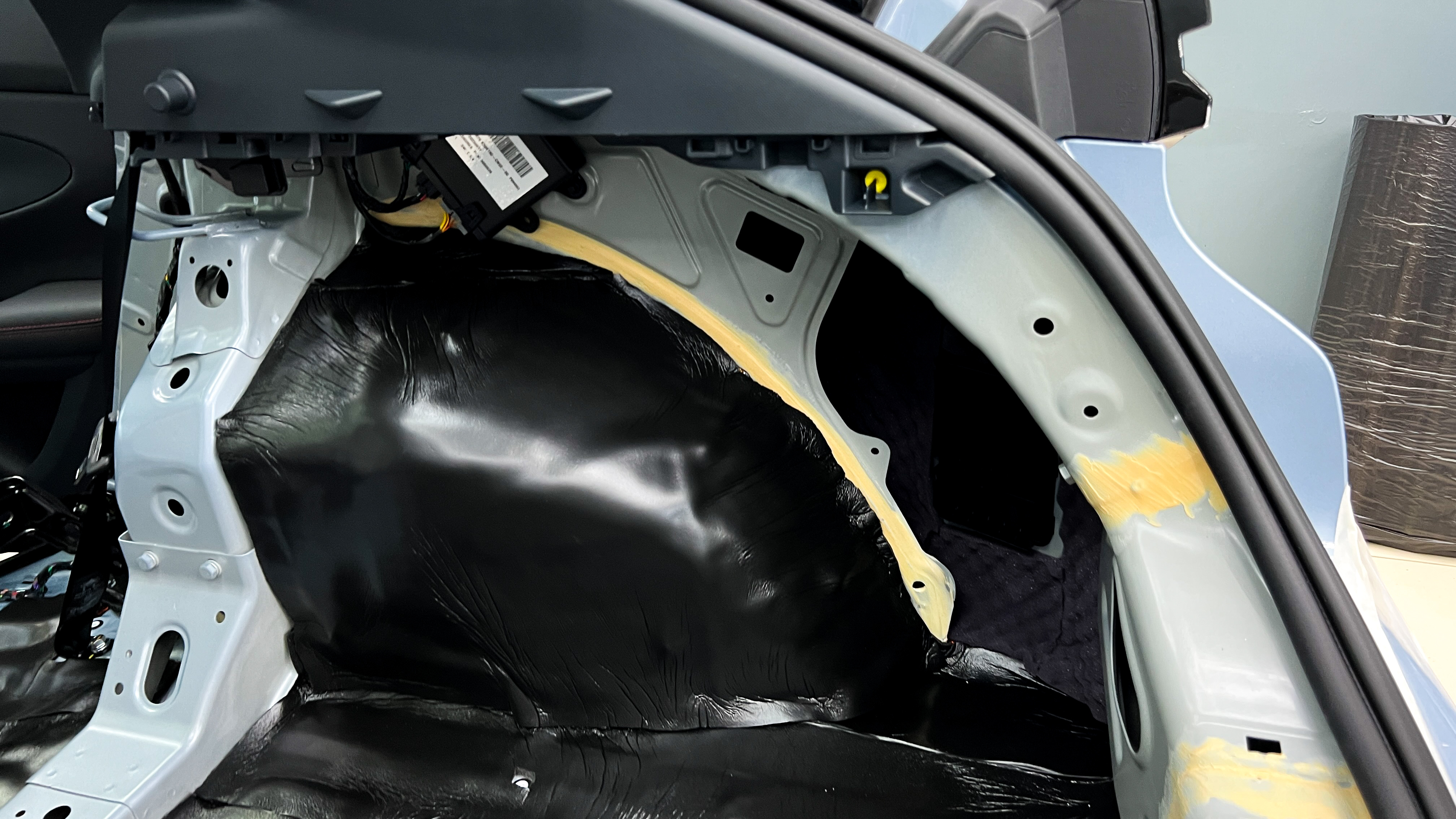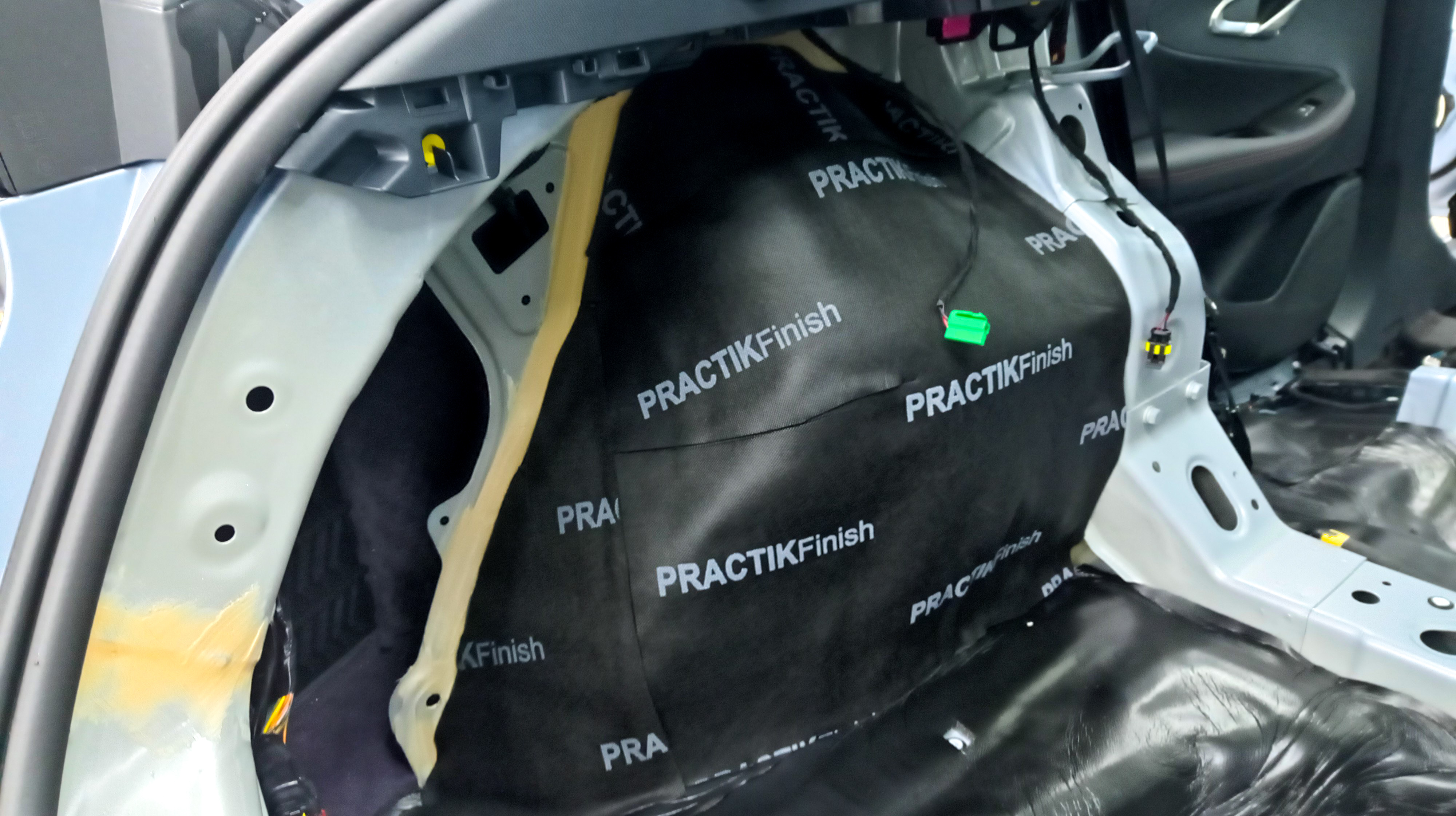 Шумоизоляция арок Чанган Юни-Т Завершаем шумоизоляцию нанесением третьего слоя звукоизоляционной мембраны Practik Finish на арки.