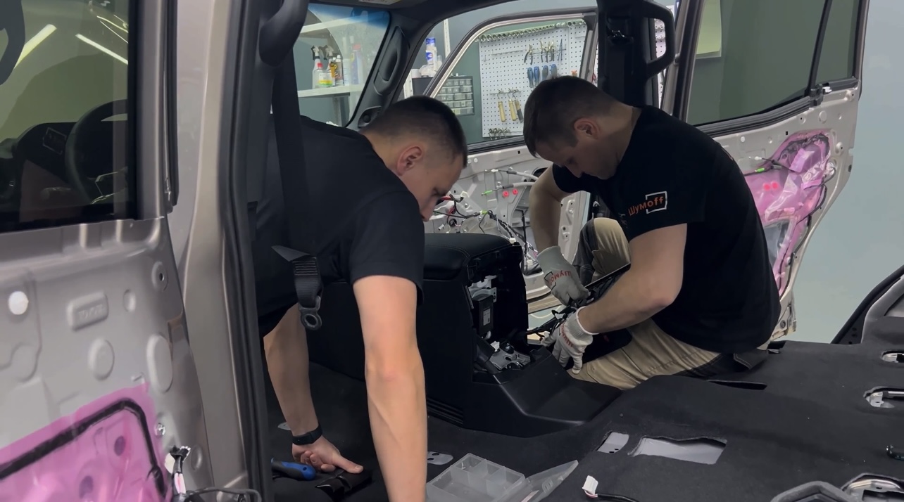 Виброизоляция пола позволит нам значительно снизить вибрацию от дороги, увеличить целостность и сбитость автомобиля, а также уменьшить чувствительность от самой структуры дороги.
